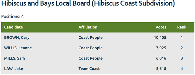 I am very humbled to have been elected back onto the Hibiscus and Bays Local Board with Backing the Bays Julia Parfitt and newbie Gregg Walden. We are looking forward to hitting the ground running and delivering on our big action plan for the Bays. We're also looking forward to a really productive 2022-2025 term with a new Hibiscus and Bays Local Board.